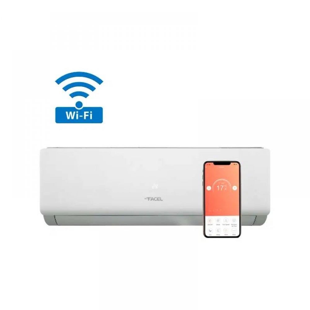 Aire Acondicionado de 24.000 BTU FACEL INVERTER Equipo de aire acondicionado tipo split muro para Frío y Calor para habitaciones de hasta 40m2. Antibacterial. Equipo con tecnología WiFi para monitoreo y control a distancia. Podrás encender, apagar, programar y controlar tu equipo desde cualquier parte, incluso estando lejos de tu hogar. Características: Equipo Inverter. Wifi para usarlo desde tu Smartphone. Frío y Calor. 220v/1Ph/50Hz. Refrigerante Ecológico R410A. Control remoto incluido. Kit de cañerías 3mt. Cable de interconexión 3mt. Función auto start. Compresor Inverter.