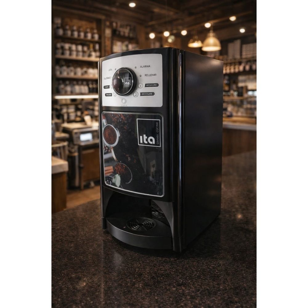 Cafetera de Café 4 Sabores ITA Descripción 4 botones de selección para diferentes bebidas calientes. Puerta trasera iluminada. Panel frontal/teclado LED. Bajo consumo de energía. Fácil programación y funcionamiento. Abastecimiento de agua: compatible tanto para el suministro de agua potable y/o contenedor de agua purificada. Función de lavado y limpieza automático. 4 tanques/contenedores individuales Dimensiones: Alto: 670 mm Ancho: 300 mm Profundidad: 465 mm Peso 26 kg Capacidad: 1.300cc por estanque Potencia (w): 1800 Peso Neto (kg): 26