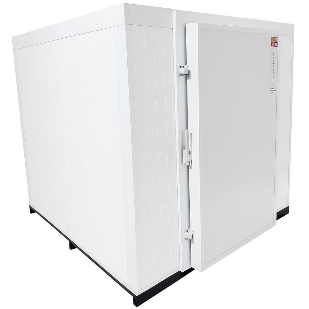 Cámara de Frío Transportable de 3.00x2.30x2.20 MT Rango de temperatura 0ºc a 10ºc 1 Unidad condensadora de 1.5 Hp monofásica. Monoblock Zanotti Italiana Refrigerante R507 Temperatura interior : 0ºC Temperatura exterior: 40ºC Potencia frig. necesaria: 2784W Volumen de cámara : 11.1m³ 1 Válvula solenoide 1 tablero de control con visor de temperatura monofásico Elitech 1 Evaporador para 20 metros cúbicos 3002. 2 VENTILADORES DE 300MM 1 Válvula de expansión 1 Puerta Abatible 1.000x2.000 mm de media temperatura hasta -5ºc 1 Cerrajería importada 2 Bisagras italianas Sistema de apertura interna Marco de puerta de acero Paneles de poliestireno expandido de 100 mm. Densidad de 25 kilos por metro cubicó Revestido de acero prepintado de 0.5 mm Con piso y techo de este mismo Piso plancha de aluminio diamantado Perfilería de acero prepintado de 0.5mm Cortina lama pvc polar hasta -30ºc 1 Luminaria led estanco Base en estructura metálica para ser tomada con una grúa horquilla