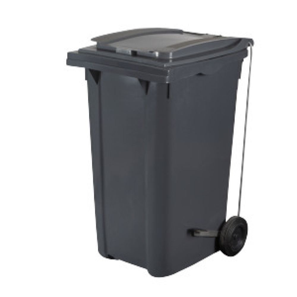 Contenedor de Basura con pedal 240 litros. Datos Tecnicos: Capacidad 240 Litros. Pedal y mecanismo metalico. Provisto de ruedas muy resistente de Goma Maciza. Dimensiones: Alto: 104 cm. Ancho: 40 cm. Largo: 40 cm.