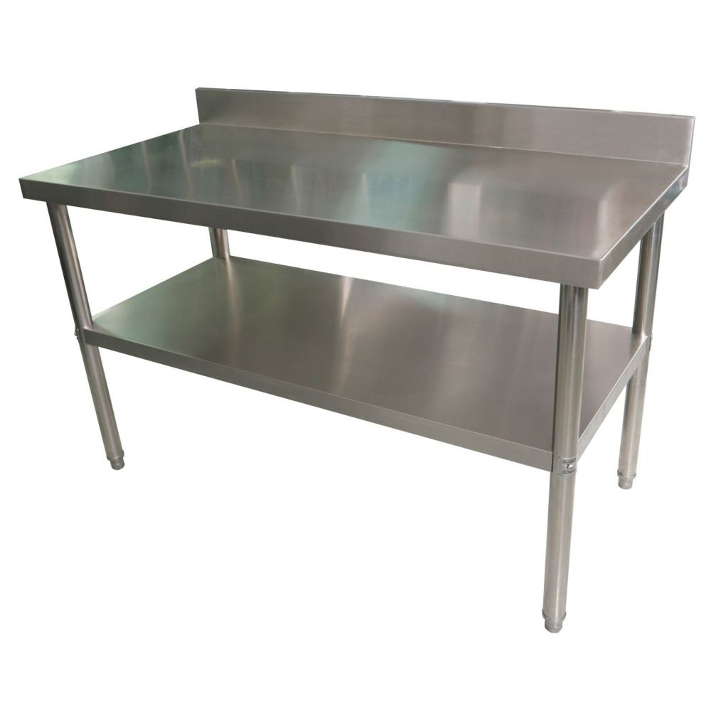 Meson Acero Inoxidable 1.50 Mts Mesón mural Construido íntegramente en acero inoxidable. Respaldo mural sanitario de 100 mm. Repisa inferior. Patines regulables. Medidas: 1500x600x850 mms. Construcción completa de acero inoxidable Atril en perfil tubular de acero inoxidable Cubierta reforzada con plancha MDF patines regulables Incluye bandeja inferior completa en acero inoxidable