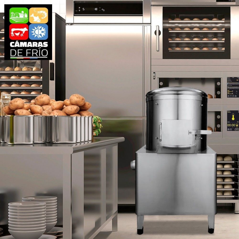 Peladoras de Papas 15 Kilos • Peladora de papas tipo Industrial de alta producción • Funcionamiento bajo el principio centrifugo y fricción. • Estructura de acero pintado al esmalte. • 220v 50Hz • Interior de acero inoxidable, disco abrasivo de alta calidad y durabilidad • Pelado por abrasivo, el cual desgasta la superficie del producto por rozamiento. El abrasivo es sumamente resistente y duradero • Doble sistema de eliminación de residuos : Manguera flexible y Terminal de agua en borde de Tapa. Producción 250 Kilos hora Potencia 750w Peso 50Kg Dimensiones: 580×580×950.
