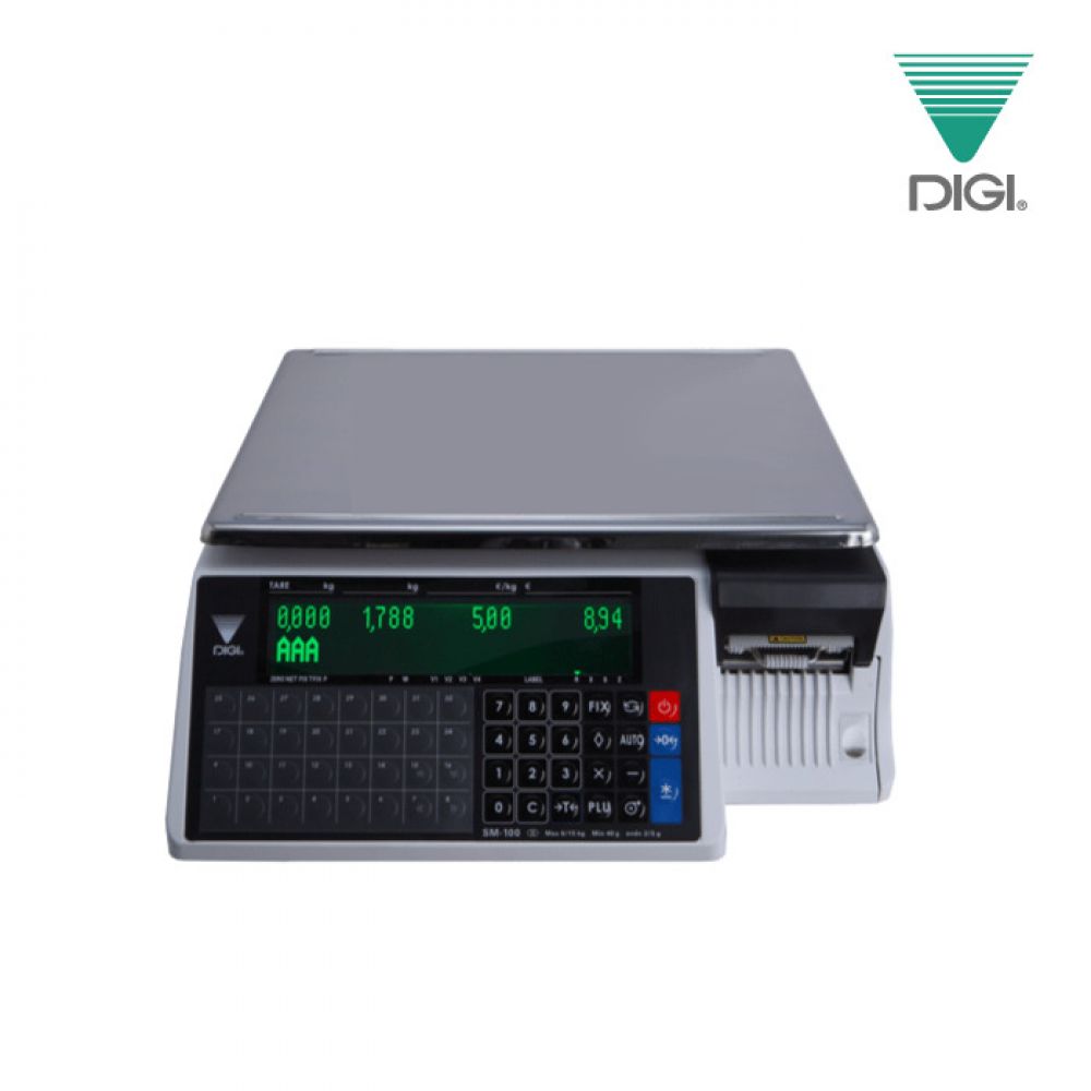 Balanza Tipificadora DIGI SM110B Balanza de gama alta con impresor Para Tikets, o etiquetas, visor bajo Capacidad 15 Kgs o 30 Kgs. CARACTERÍSTICAS •MEMORIA DE 4 MB STANDARD: 17.000 PLU •32 TECLAS PLU PROGRAMABLE •CAPACIDAD 30 KILOS ( 15/30 KG. : 5-10 GR.) •VISOR ALFANUMÉRICO LUMINOSO VERDE •FORMATO LIBRE DE ETIQUETAS •TABLA NUTRICIONAL •CASSETTE RECIBO/ETIQUETA •CABEZAL TÉRMICO BAJO COSTO •VELOCIDAD DE IMPRESIÓN ETIQUETA MAX.80 MM./SEG.- •VELOCIDAD DE IMPRESIÓN DE VALE MAX.105 MM./SEG •INTERFAZ DE COMUNICACIÓN RS-232, ETHERNET, TCP/IP •OPCIONAL COMUNICACIÓN WIFI •GARANTÍA 1 AÑO •VENDEDOR FLOTANTE (HASTA 5 BALANZAS CONECTADAS)