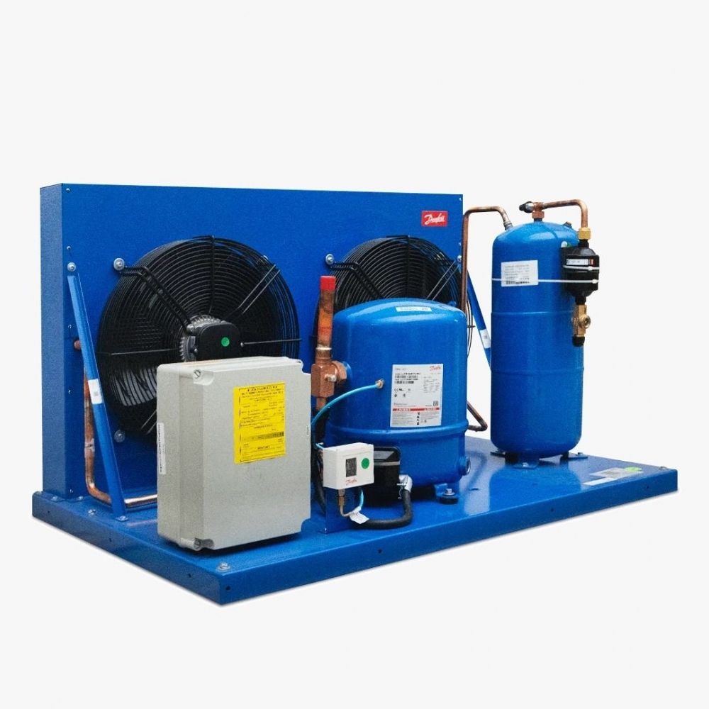 Unidad Condensadora Danfoss 12 HP 380V COMPRESOR DANFOSS HGZ144 380V Las unidades condensadoras Danfoss son equipos de refrigeración comercial e industrial diseñados para ofrecer un rendimiento óptimo y eficiencia energética en diversas aplicaciones. Estos sistemas compactos integran un compresor scroll de alta eficiencia, condensador y componentes de control en una única unidad. Son ideales para: Cámaras frigoríficas Supermercados Almacenes refrigerados Procesos industriales que requieren control preciso de temperatura Disponibles 380V, ofrecen capacidades desde pequeñas instalaciones comerciales hasta grandes sistemas industriales. Características principales: Compatibles con refrigerantes R404A/R507 Tecnología de última generación Garantía de fiabilidad Bajo consumo energético Su diseño robusto y componentes de alta calidad aseguran una larga vida útil y mantenimiento reducido, cumpliendo con los estándares más exigentes de la industria de la refrigeración.