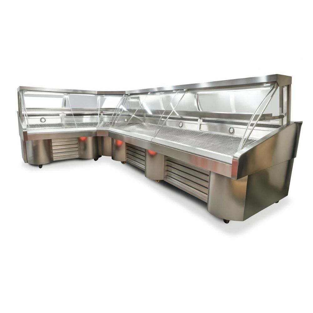 Vitrina Carnicera Pata Pilar Metro Lineal Vitrina Carnicera Pata Pilar Valor por Metro Lineal sobre 1.5 mt hasta 12 metros lineales, si necesita mas larga la vitrina se puede unir valor L, negativa o positiva se cobra un metro adicional por cada curva Sin bodega Dimensiones alto 1.35 mt ancho 1.10 mt Largo a pedido