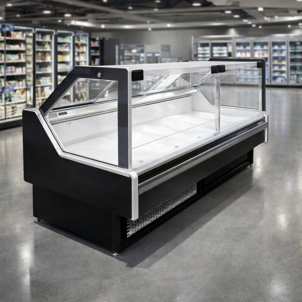 FICHA TÉCNICA Vitrina Refrigerada Recta – Marca Vitrezza Descripción General Vitrina refrigerada recta diseñada para la exhibición profesional de carnes, fiambres y productos frescos en supermercados, carnicerías y tiendas gastronómicas. Su sistema de refrigeración por aire forzado permite mantener una temperatura uniforme en toda la superficie de exhibición, garantizando una conservación óptima del producto. Incorpora vidrios templados rectos alzables, iluminación LED interior y un amplio mesón de trabajo para mayor comodidad operativa. Especificaciones Técnicas Marca: Vitrezza Tipo de equipo: Vitrina refrigerada recta Capacidad: 920 L Dimensiones (L x P x H): 300 x 105 x 120 cm Peso Neto: 426 kg Peso Bruto: 480 kg Potencia: 7900 W Sistema de Refrigeración: Aire forzado Control de Temperatura: Digital regulable Rango de Temperatura: 2°C a 8°C Sistema de Deshielo: Automático Construcción y Componentes Vidrio: Templado recto con sistema alzable Iluminación: LED interior horizontal incorporado Superficie de Trabajo: Amplio mesón de apoyo para manipulación de productos Bodega Inferior: Incluye espacio de almacenamiento para productos o utensilios Aplicaciones Ideal para: Carnicerías Supermercados Minimarket Rotiserías Tiendas gourmet
