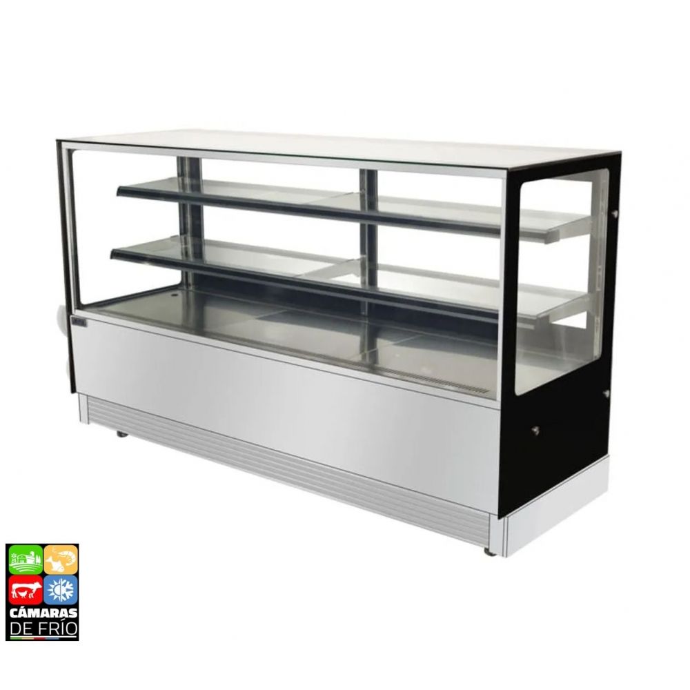 Vitrina Cuadrada Pastelera de 1.800 mm. VITRINA RECTA MODELO HK-1800 Construcción en acero inoxidable y vidrio templado Controladores digitales con visor de temperatura Sistema anti empañado de cristales Puerta de vidrio de correderas , con amplia exhibición Repisas de Cristal regulables en altura Iluminación por tubos fluorescentes MODELO HK-1800 (CUADRADA) Dimensiones 1800x725x1200 mm. Capacidad 580 LT Potencia 220v/50hz Temperatura de funcionamiento 2° A 8° Consumo 620w Repisas Regulables 2 Puertas deslizables 2